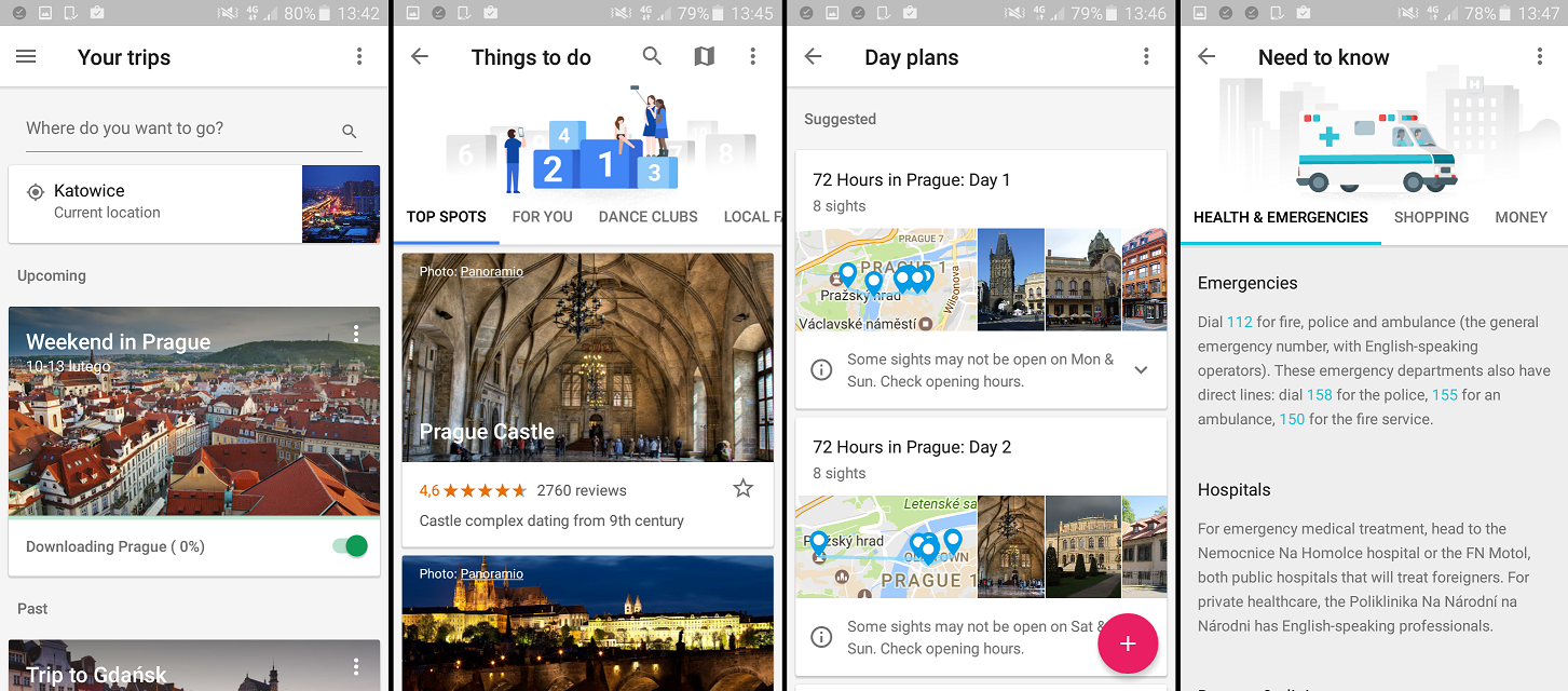 Takiej aplikacji turystycznej było nam trzeba. Któż inny mógłby ją wydać, jeśli nie Google, które gromadzi gigantyczne ilości danych, w tym opinie o miejscach czy zdjęcia użytkowników. Niestety, aplikacja ma jedną wadę: jest dostępna tylko w języku angielskim. Jeśli to nie jest dla Was przeszkodą, to na pewno przypadną wam do gustu jej możliwości. W jednym miejscu zapiszecie swoje rezerwacje i ulubione miejsca, zasięgniecie informacji o transporcie publicznym i pomocy medycznej, znajdziecie odpowiednią knajpkę i zaplanujecie aktywności na kolejne dni wyprawy. Co ważne – do wszystkiego można mieć dostęp offline, wystarczy tylko pobrać zawartość dotyczącą danego miejsca.
